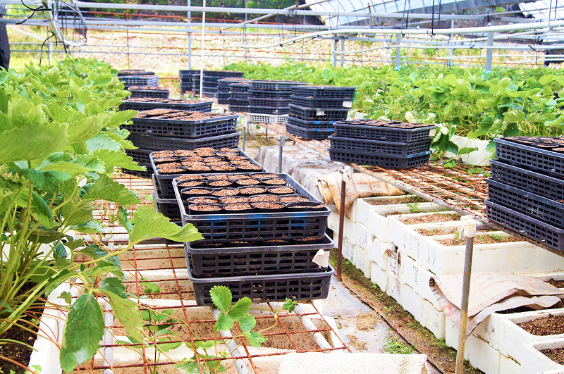 6月第一週頃から、いちご苗の定植に向けた準備が始まります。畑の土づくりを行い、有機肥料を施して栄養たっぷりの環境を整えます。また、土壌の状態をチェックしながら、病害虫の予防やマルチ敷きの準備も進めていきます。美味しいいちごを育てるための大切な土台づくりの時期です。