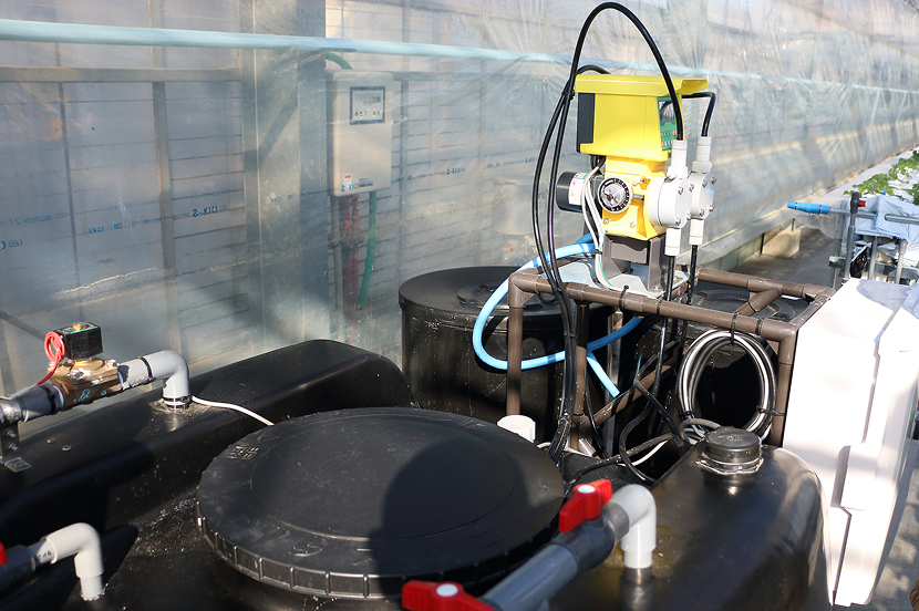 植え付けが終わると、苗の成長を助けるために液体肥料による栄養管理をスタートします。特に根の活着を促し、元気に育つためにはバランスのとれた施肥が欠かせません。成長の段階に応じて液肥の種類や濃度を調整しながら、いちごが健やかに育つよう丁寧に管理していきます。